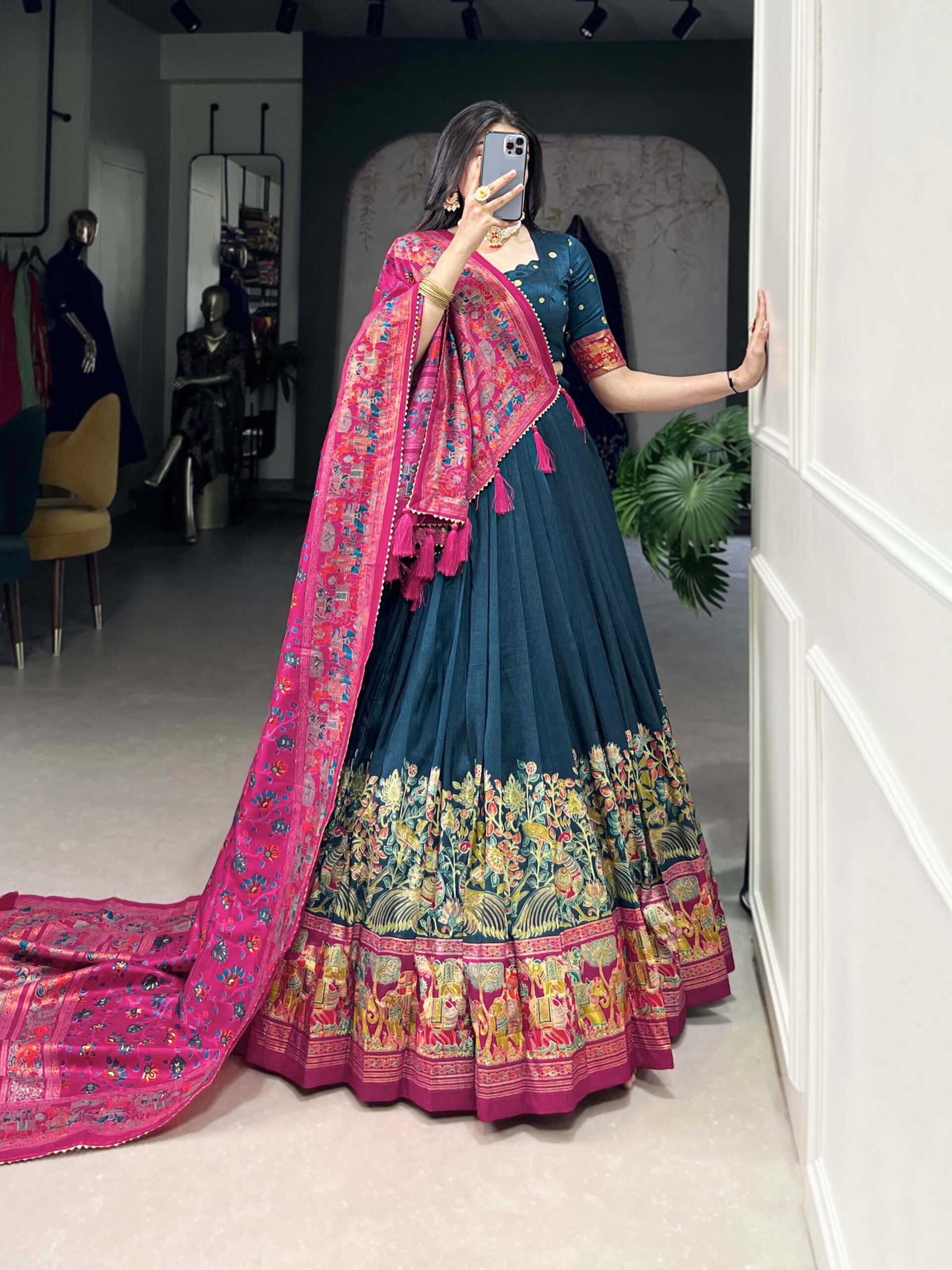 Festive Charm – Tussar Silk Lehenga Choli with Blended Elegance & Flowing Dupatta