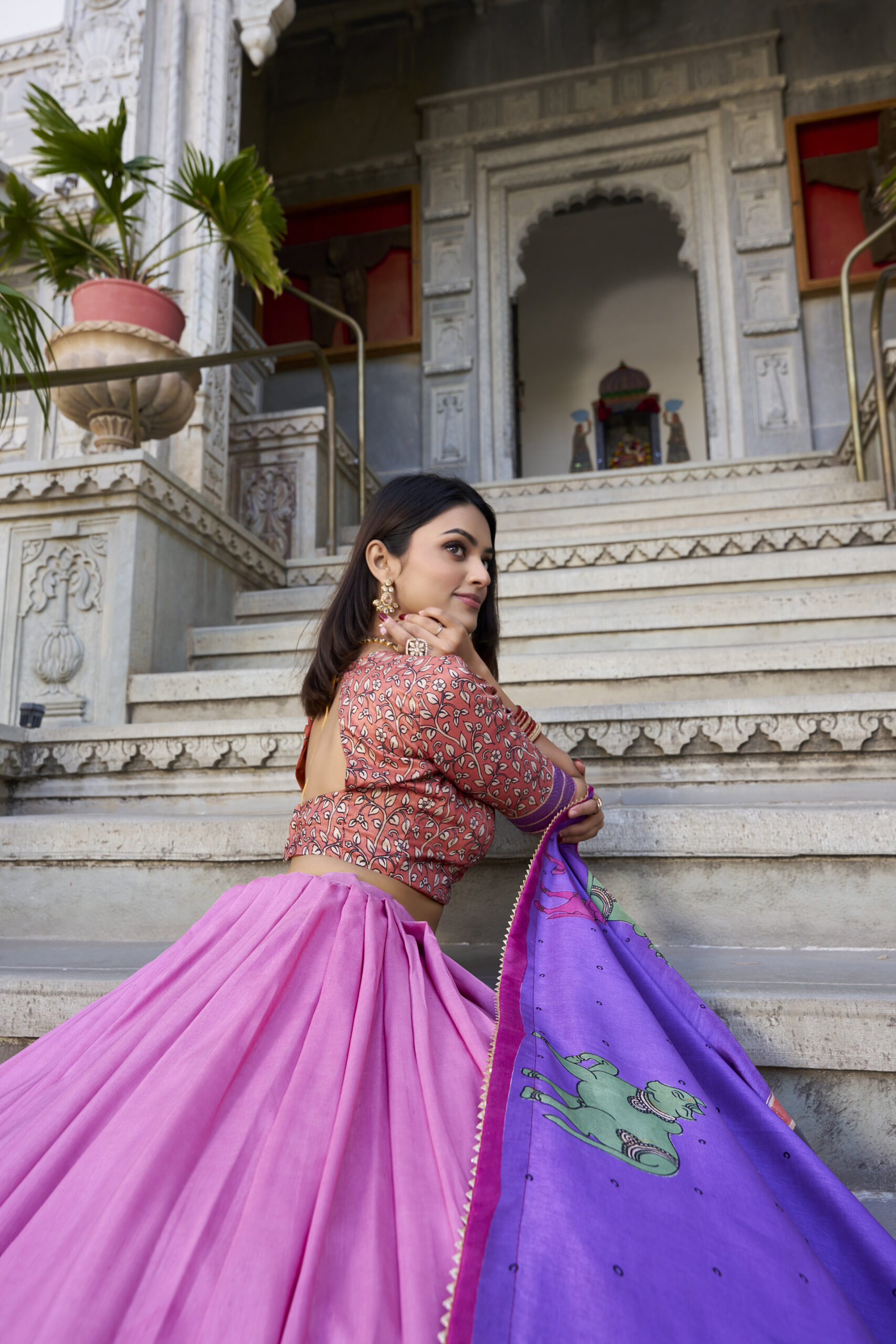 The accompanying blouse fabric allows you to personalize your look. Made from the same Tusser Silk and detailed with matching print and foil work, it provides ample room for creative styling—whether you’re opting for a classic cut or a more modern finish.